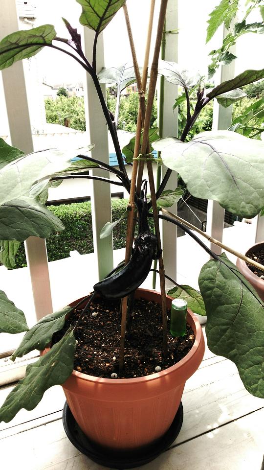 普通の長茄子はまだ4個ぐらいしか花芽出てないんだけどなぁ…。